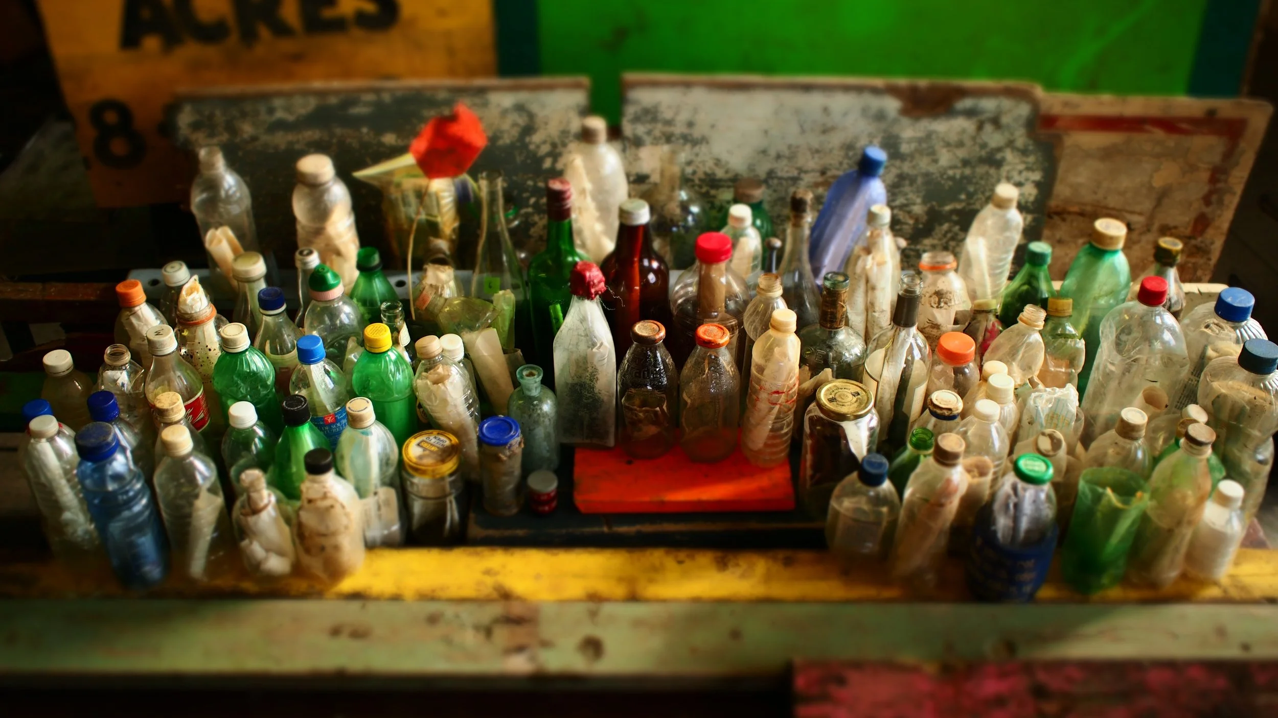 Neon signs in windows with green sign saying 'Open' and 'North Quarry,' and a red sign depicting a bed with a blue mattress cover.